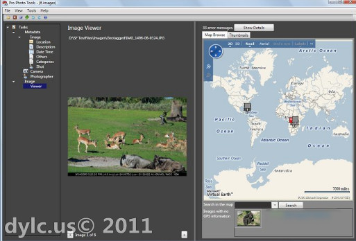 Microsoft Pro Photo Tools provides a set of tools for photographers to perform various tasks with their images, including raw conversion, geotagging, viewing/editing of metadata and more. If your images contain GPS data you can view their location in the built-in Virtual Earth viewer, and if they don`t, you can easily add it by dragging the image into the geographical location on the map. The metadata is added directly to the image file and can be read by other imaging software, including Adobe products